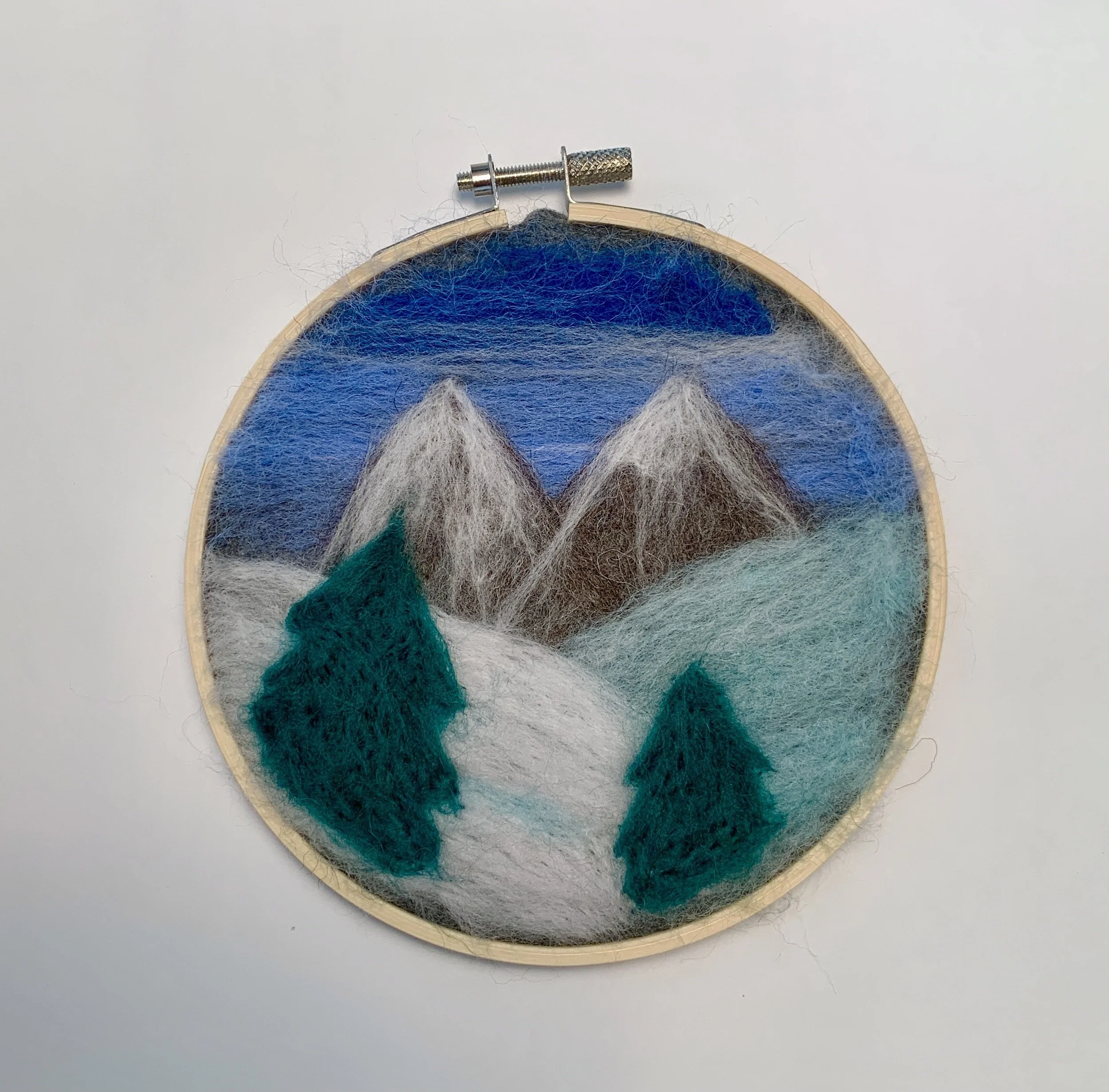 Learn how to “paint” with wool in this seasonal landscape. Use a barbed needle to attach colorful wool to an embroidery hoop. You'll leave the class with a finished piece, basic tools and the knowledge you'll need to felt on your own. Needle felting is easier than it looks plus it's fun and relaxing!
